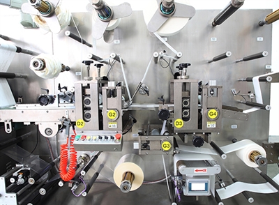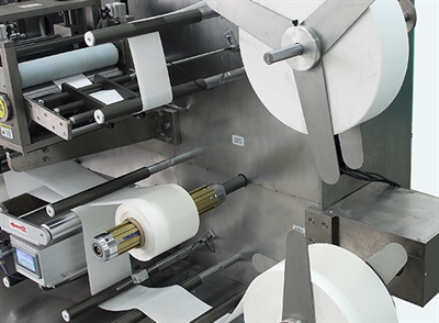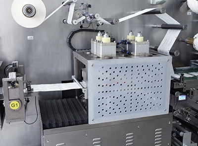 該機是我公司研發(fā)的四邊封成型包裝機,針對醫(yī)用敷料行業(yè)自動成型包裝一體化而設(shè)計開發(fā)的產(chǎn)品。適用于醫(yī)用敷料貼,PU敷料貼,膏藥貼,眼貼等產(chǎn)品離型紙卷筒材料自動剝離,粘貼、復(fù)合、切斷、成型后自動包裝制袋。整機十個伺服電機驅(qū)動, 采用運動控制器,使整機運行程序化,伺服牽引、批號打印、往復(fù)式熱封,縱橫裁切和成品輸送。該機性能優(yōu)越、操作方便。